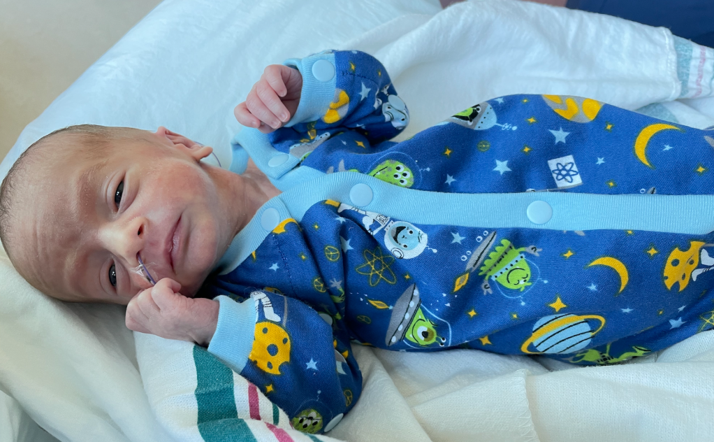 “It turns out, this one is the perfect outfit to start with because it has extra snaps on the arms which will make it super easy to put on him. Excellent choice!” she validated as she showed me how to work around the various tubes and wires monitoring his vital signs.